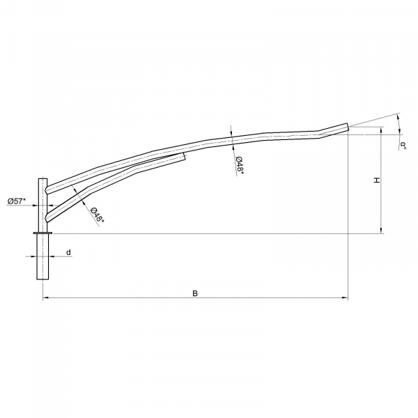 Однорожковые кронштейны К11-0,7-1,5-1-1 предназначен для крепления светильника на трубчатой опоре освещения. Завод опор освещения «Альдекс» изготавливает однорожковые консольные кронштейны из стального проката. Собственное производство позволяет выполнять изделия надлежащего качества и в кратчайшие сроки. Конструкция однорожковых кронштейнов К11-0,7-1,5-1-1. Конструкция консольных однорожковых кронштейнов К11-0,7-1,5-1-1 представляет собой гнутую металлическую трубу заданных размеров.