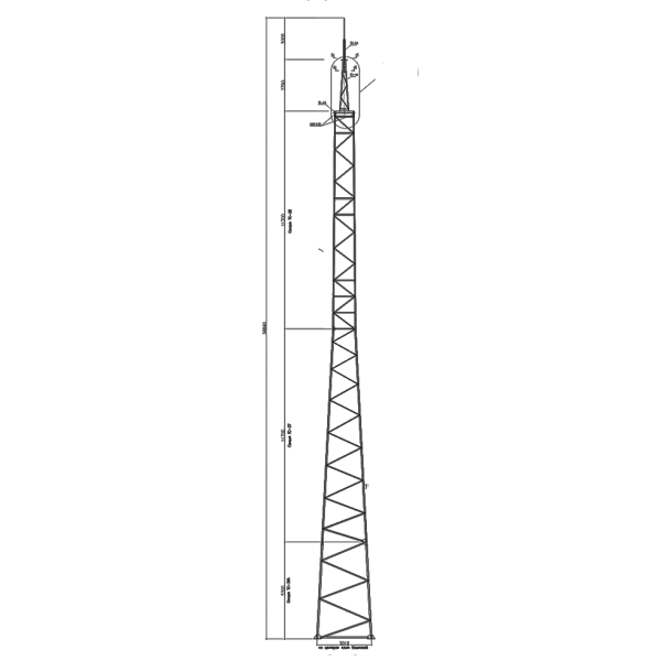 Молниеотвод стальной высотой 37,0 м. Материал конструкций: углеродистые стали классов С235, С245, С255 (3сп/пс-5) и низколегированные стали класса С345 (09Г2С-12).