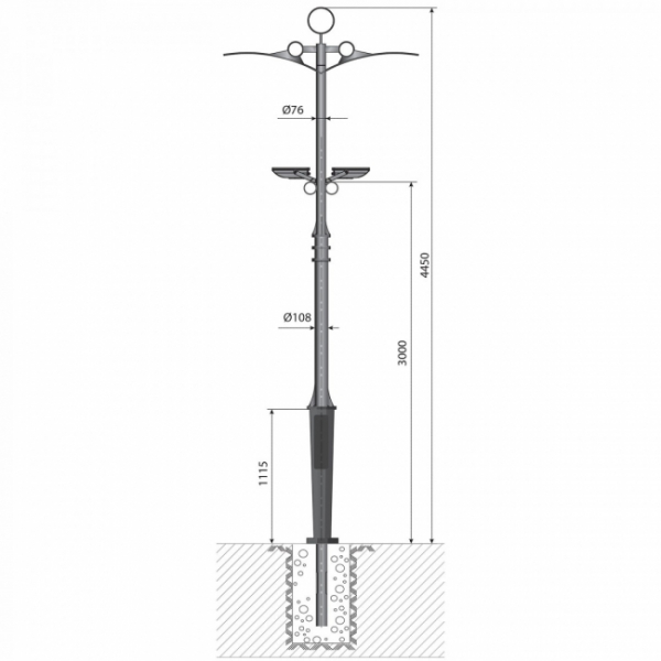 Декоративная опора "Колизей" - 2 - 4,4 предназначена для освещения парков, скверов, набережных, аллей, коттеджных посёлков, прилегающих территорий.