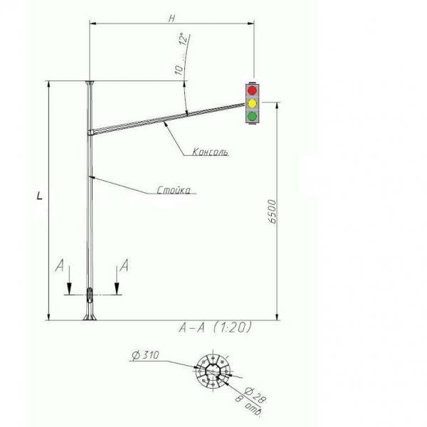 Опора ОГСГ-6,6-6,0 — это гранёная силовая светофорная конструкция. Используется для установки светофоров, возможно дополнительно установить дорожные знаки, указатели, видеофиксаторы.